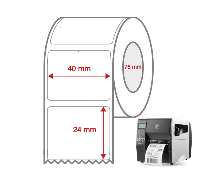 Direct Thermal Label Rolls 40mm x 24mm Non Perforated for Industrial Label Printers