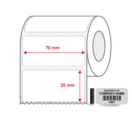 Thermal Transfer Blank Silver Mylar Label Rolls 70mm x 25mm Perforated